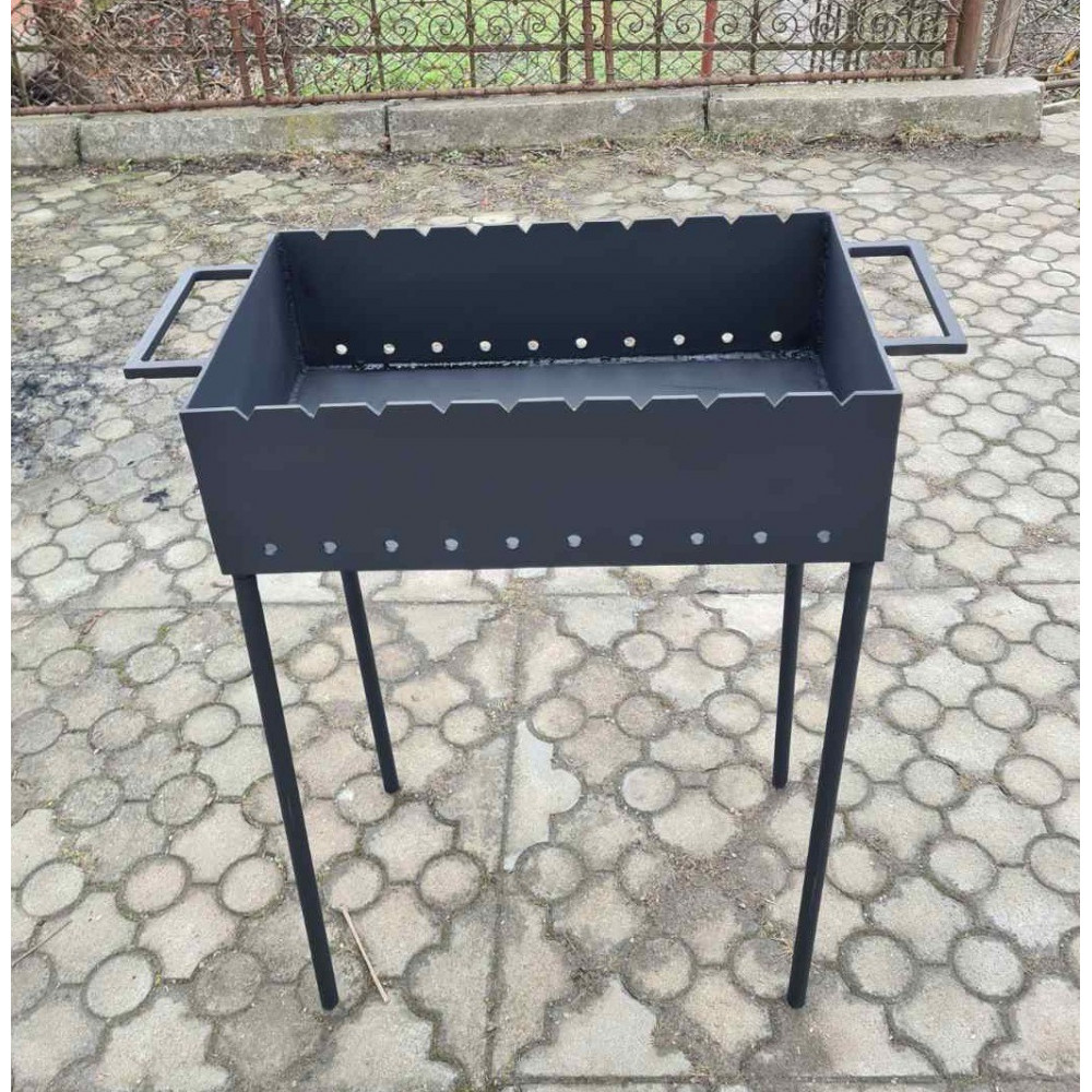 Жаровня изготовлена из металла 4 мм, что позволяет длительно использовать при высоких температурах.