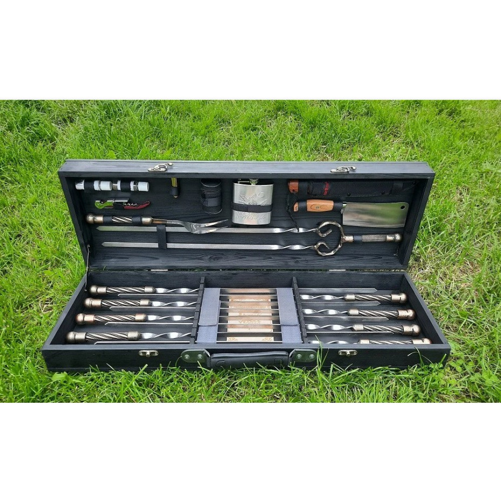 Предлагаем вашему вниманию шикарный и премиальным набор шампуров в оригинальном черном кейсе.