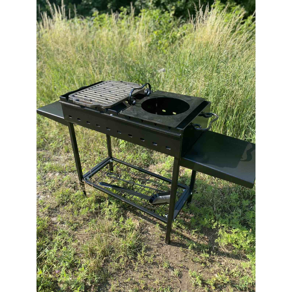 решітка-гриль, підставка під казан, перегородка для жаровні, бічні столики, совок, кочерга