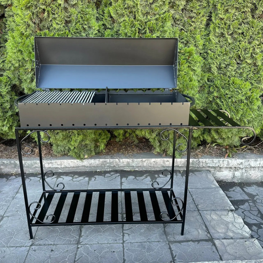 Модель обладнана кришкою, завдяки якій мангал можна використовувати як барбекю.