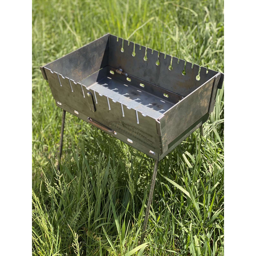Такий мангал дуже зручно возити у багажнику автомобіля. Відмінний варіант для виїзних пікніків, для риболовлі, полювання або дачі.