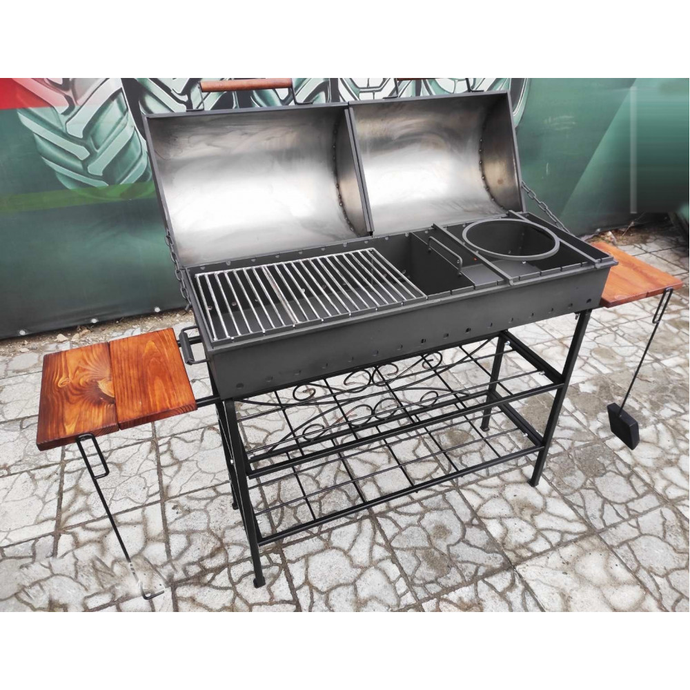 Мангал з повною комплектацією для приготування будь-яких страв: шашлику, будь-яких страв на грилі, страви в казані або сковороді, а також страви гарячого копчення.