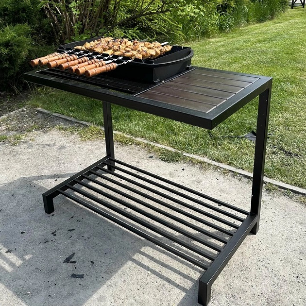 Бічна стільниця-стіл можна використовувати як дошку для нарізування продуктів або як столик, щоб усе було під рукою під час приготування страв на мангалі.
