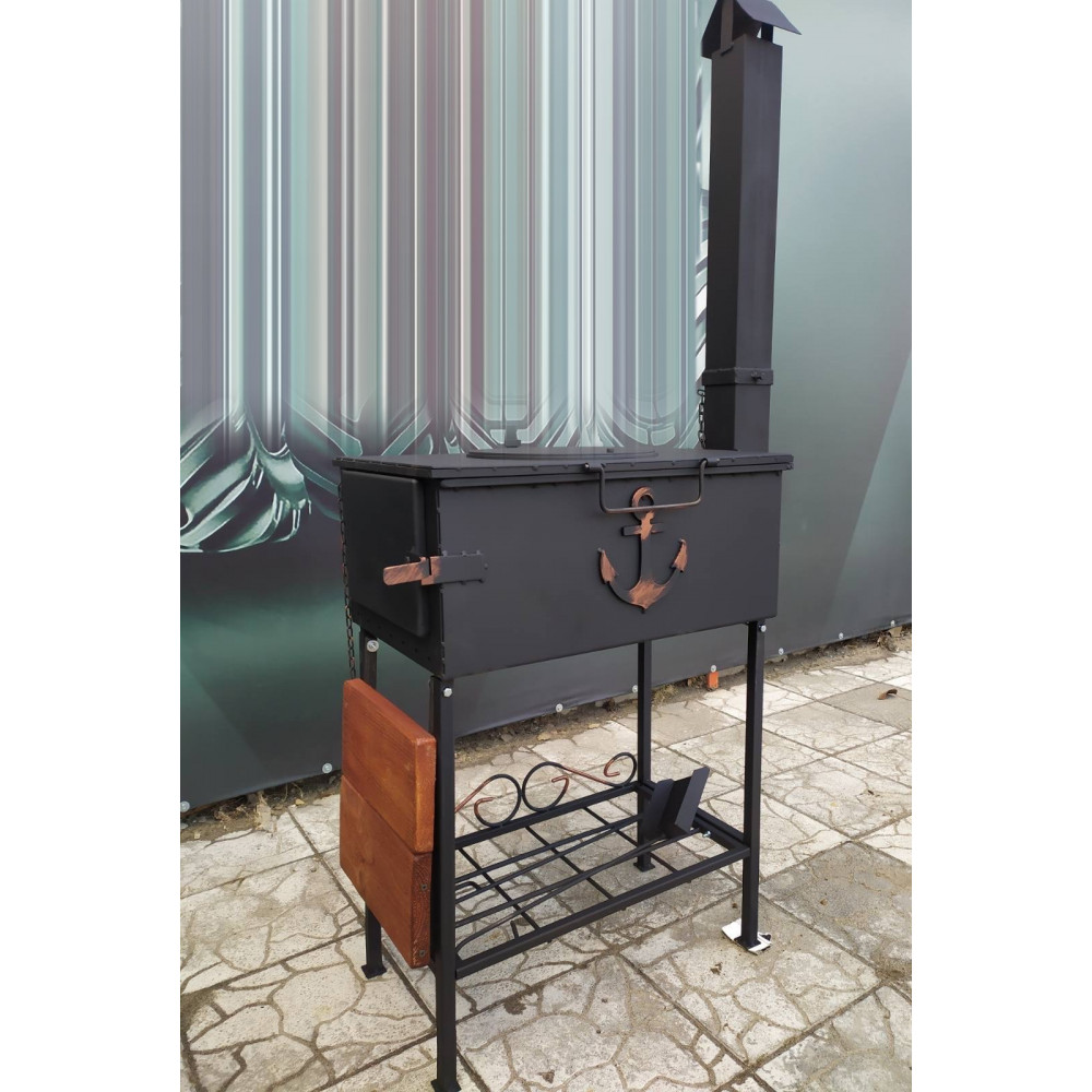 Решітка-гриль, кришка з отвором для казана, знімна труба, столик, кочерга, совок