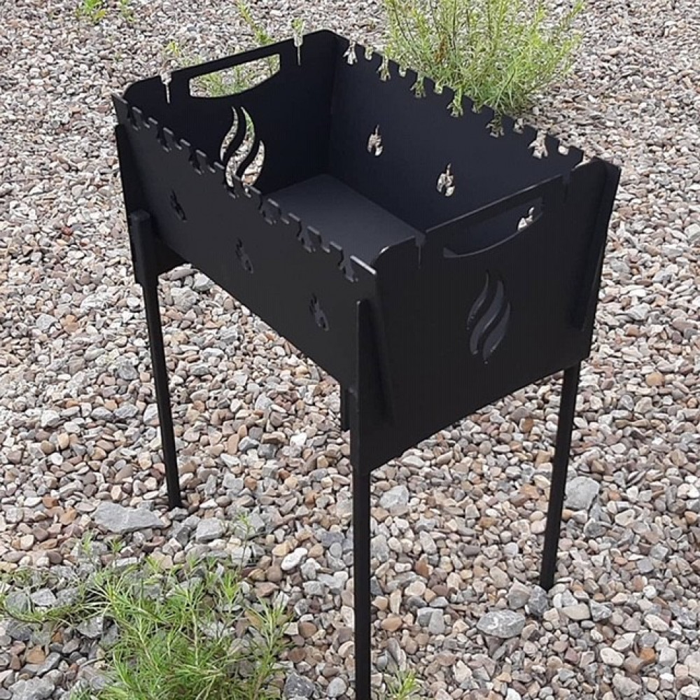 Якісний цільнолистовий метал 3 мм дозволить використовувати мангал тривалий час, в тому числі при постійних високих температурах.