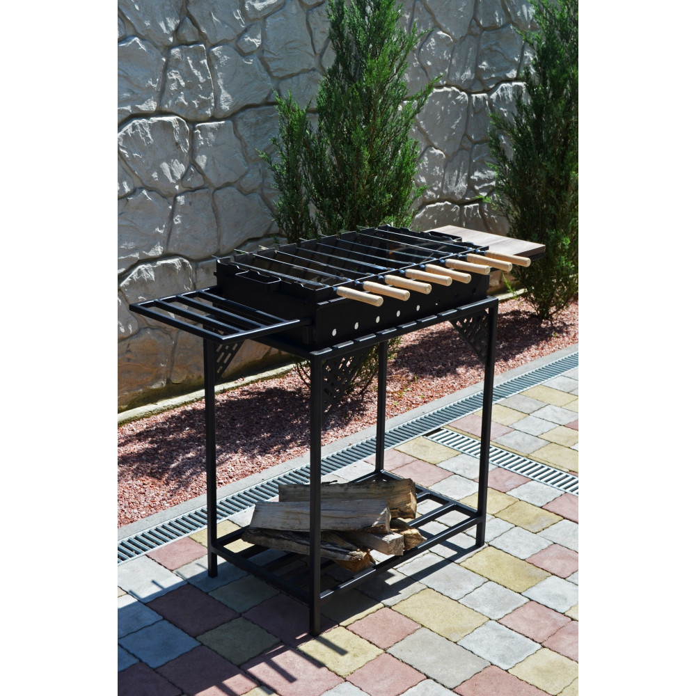 Стаціонарний мангал 3 мм на 10 шампурів з боковими зйомними столиками.