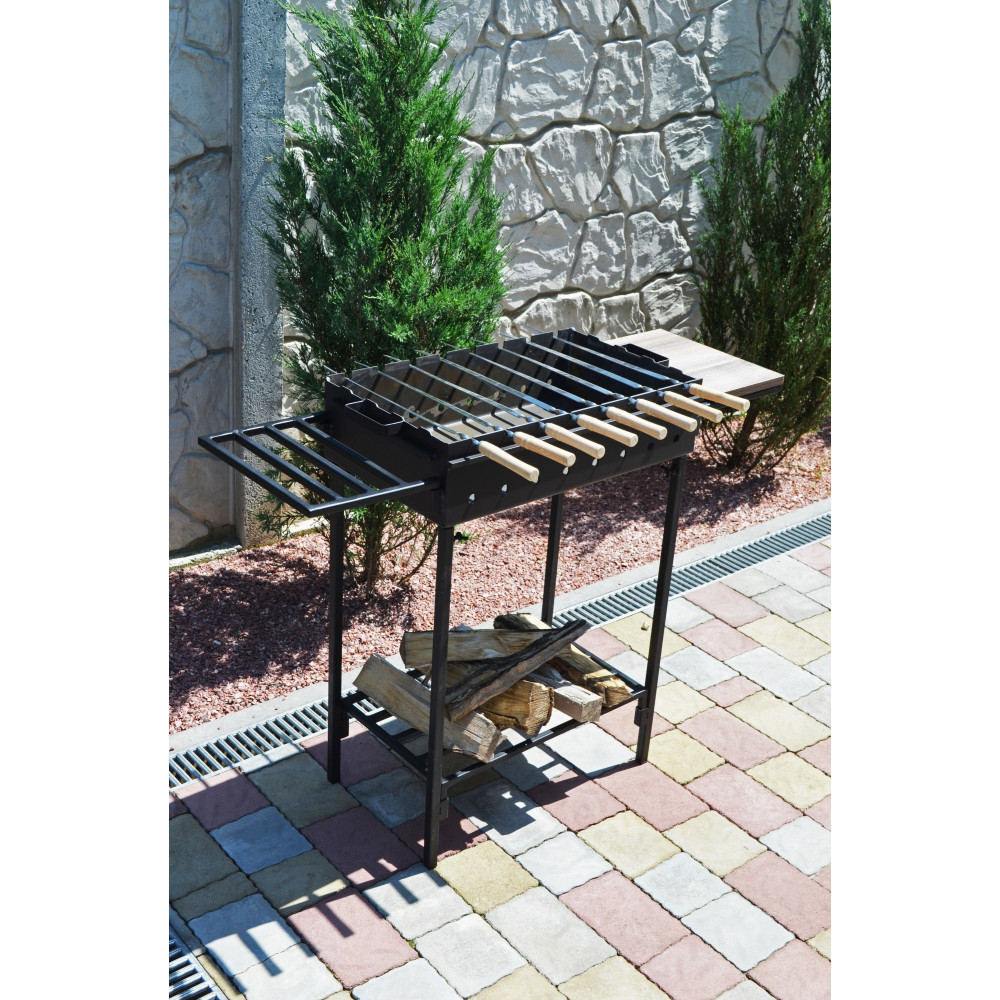 Стаціонарний мангал 3 мм на 12 шампурів з боковими зйомними столиками.