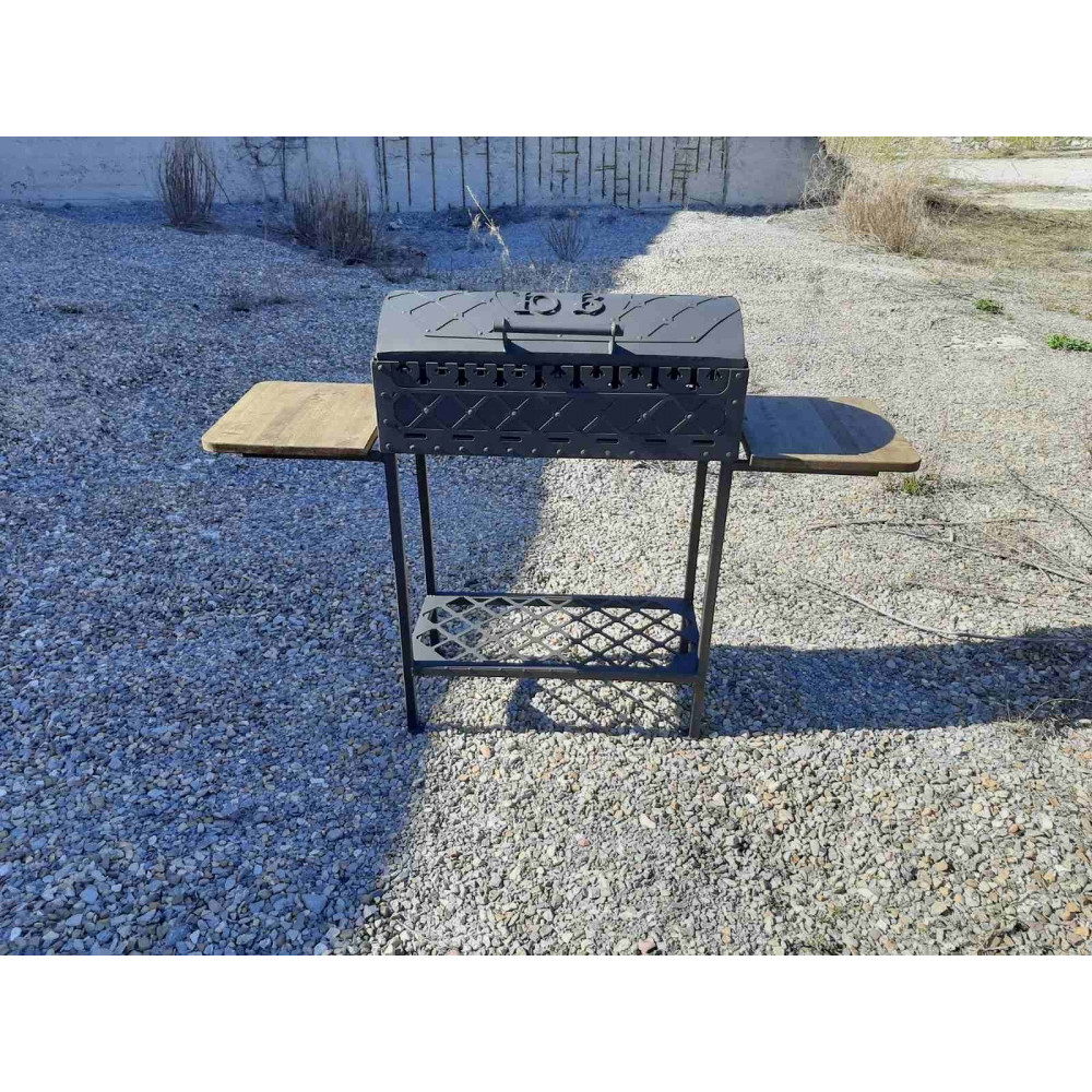 Мангал укомплектований кришкою, що дозволяє уникнути попадання бруду і води в жаровню.