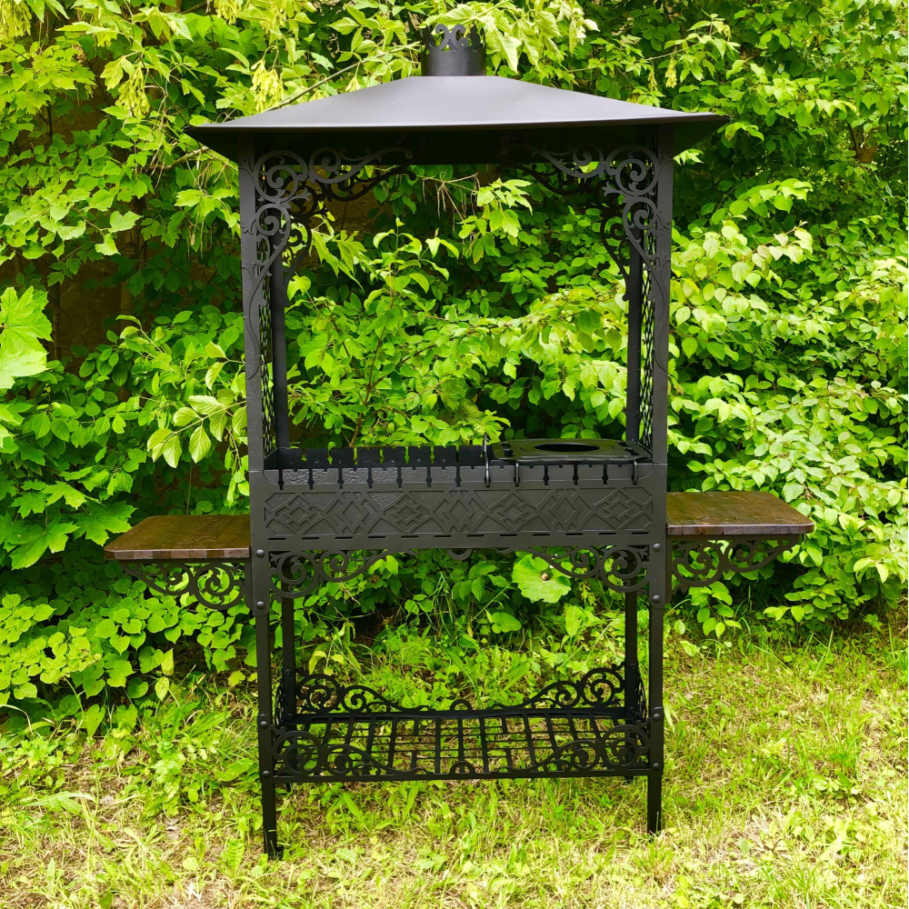 Мангал обладнаний дахом, що дозволяє готувати страви навіть під час опадів.