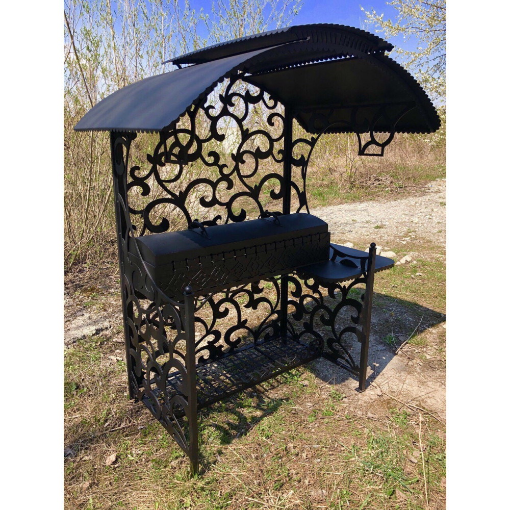 Мангал обладнаний дахом, що дозволяє готувати страви навіть під час опадів.