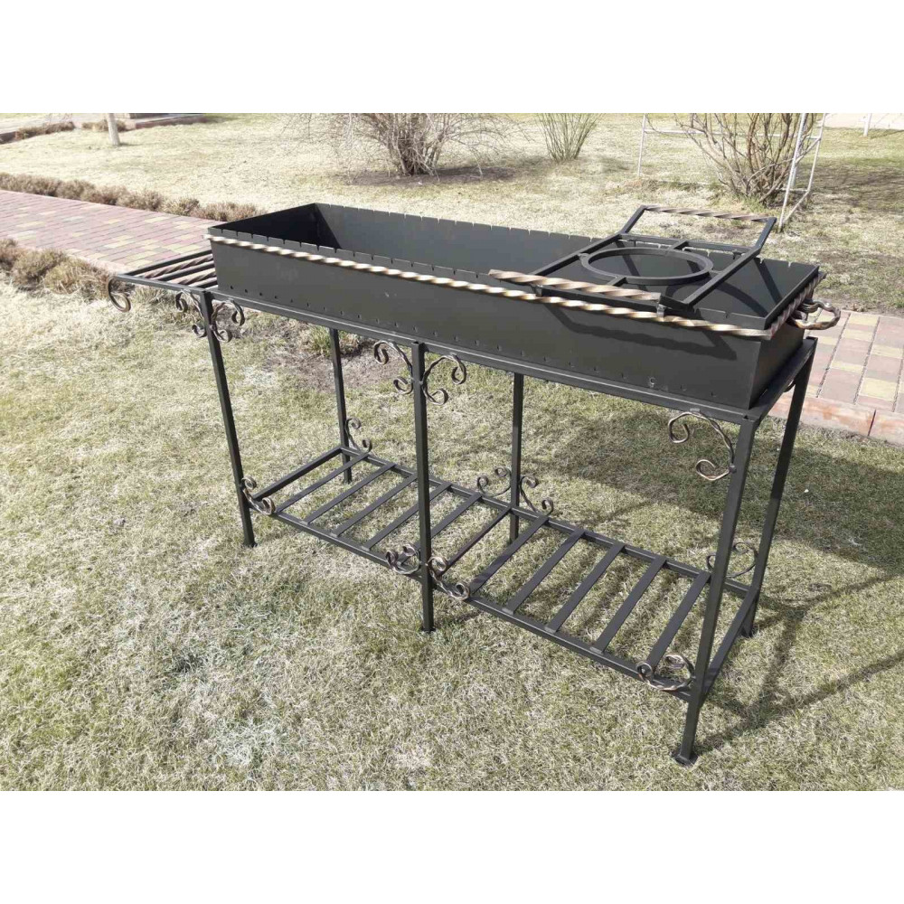 Модель укомплектована зйомним бічним столиком і підставкою під казан / сковороду.