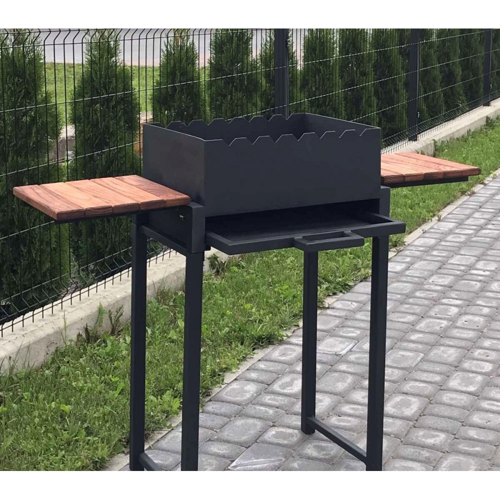 Цей мангал стане надійним помічником для приготування страв на шампурах, решітці або в казані.