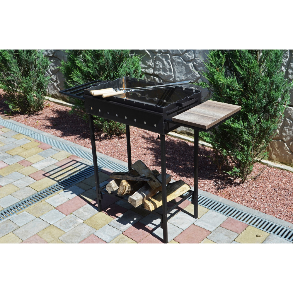 Стаціонарний мангал 3 мм на 8 шампурів з боковими зйомними столиками.