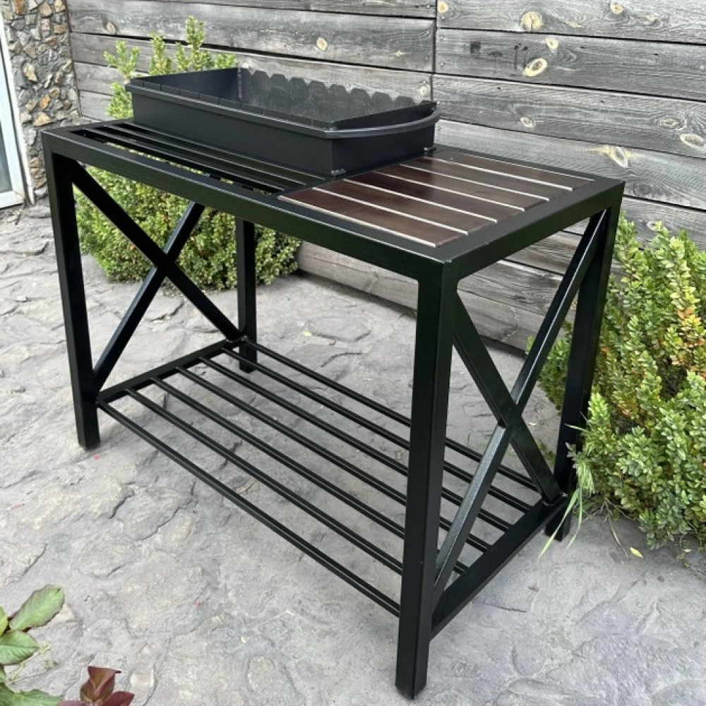 Бічна стільниця-стіл можна використовувати як дошку для нарізування продуктів або як столик, щоб усе було під рукою під час приготування страв на мангалі.