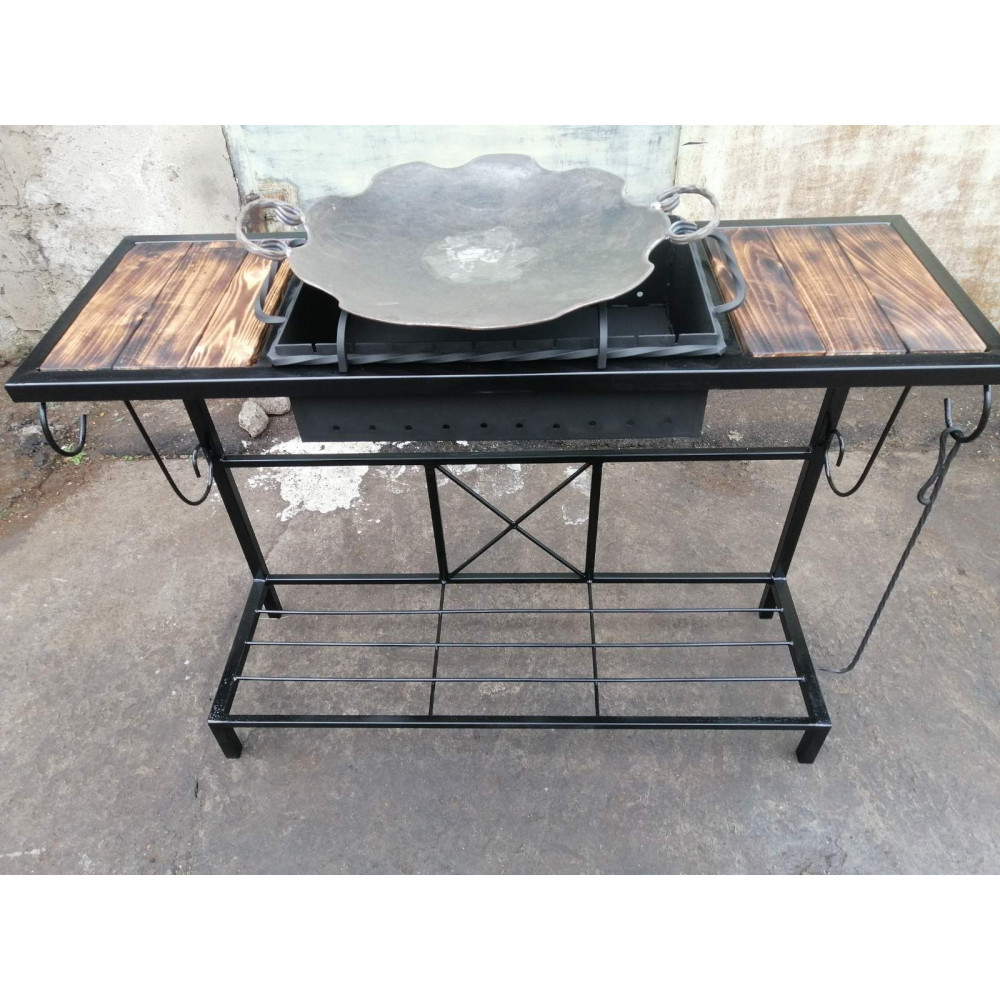 Бічні дерев'яні столики дозволять розмістити все необхідне під рукою: посуд, спеції, шампура, ніж та інші предмети.
