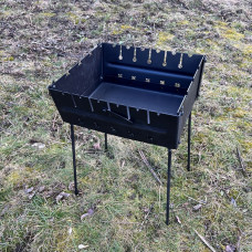 Для виготовлення використовується холоднокатана сталь 2 або 3 мм. Моделі розраховані на 6, 7, 8, 10 або 12 шампурів. Купити мангал розбірний можна також в комплекті з чохлом та шампурами з доставкою по Україні.