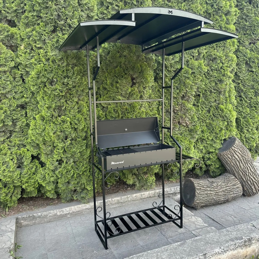 Мангал з дахом - це чудовий подарунок для любителів відпочинку на відкритому повітрі та смачних страв на багатті. Немає нічого смачнішого підсмаженого м'яса на дровах або вугіллі. Металевий навіс захистить від сонця та дощу.