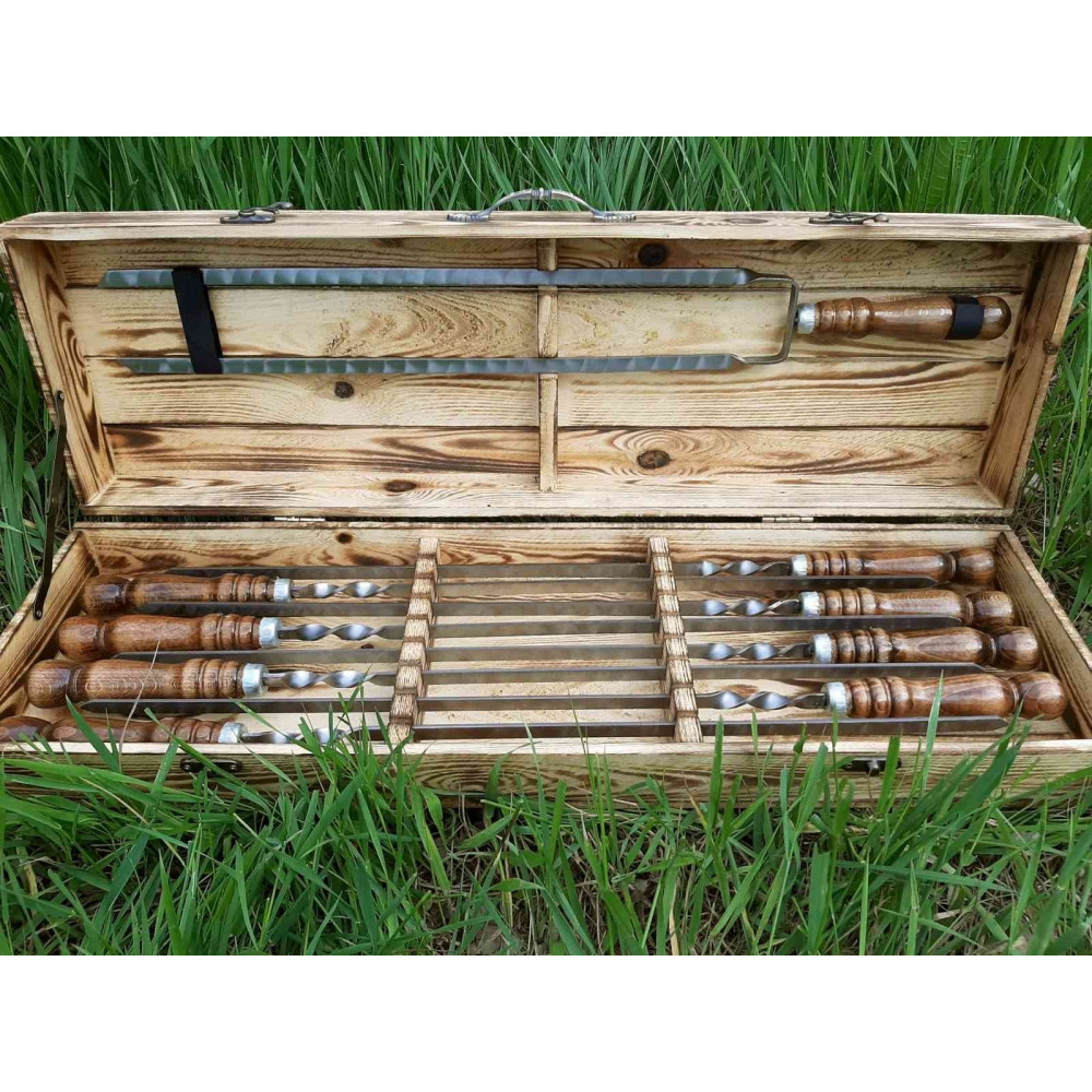 Шампура та аксесуари упаковані в дерев'яний кейс ручної роботи, що надає подарунку ще більшої цінності та преміальності.