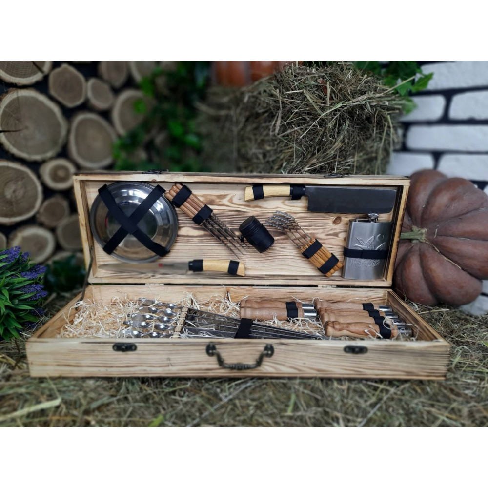 НОВИНКА! Шикарний та преміальний набір із розбірними шампурами у дерев'яному подарунковому кейсі.