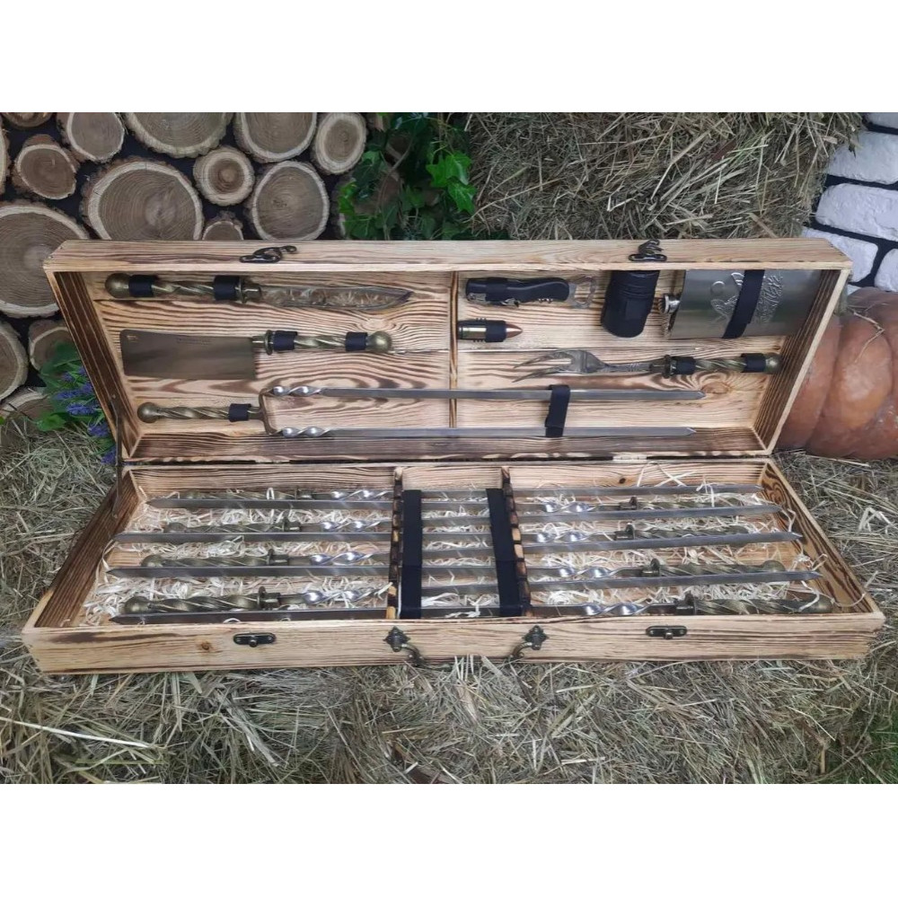 Крім оглушального зовнішнього вигляду набір також має високий рівень функціональності та корисності. У кейсі зібрано все найнеобхідніше для приготування найрізноманітніших страв на мангалі: шашлик, люля-кебаб, реберця, овочі, гриби, курку, крильця та багато іншого.