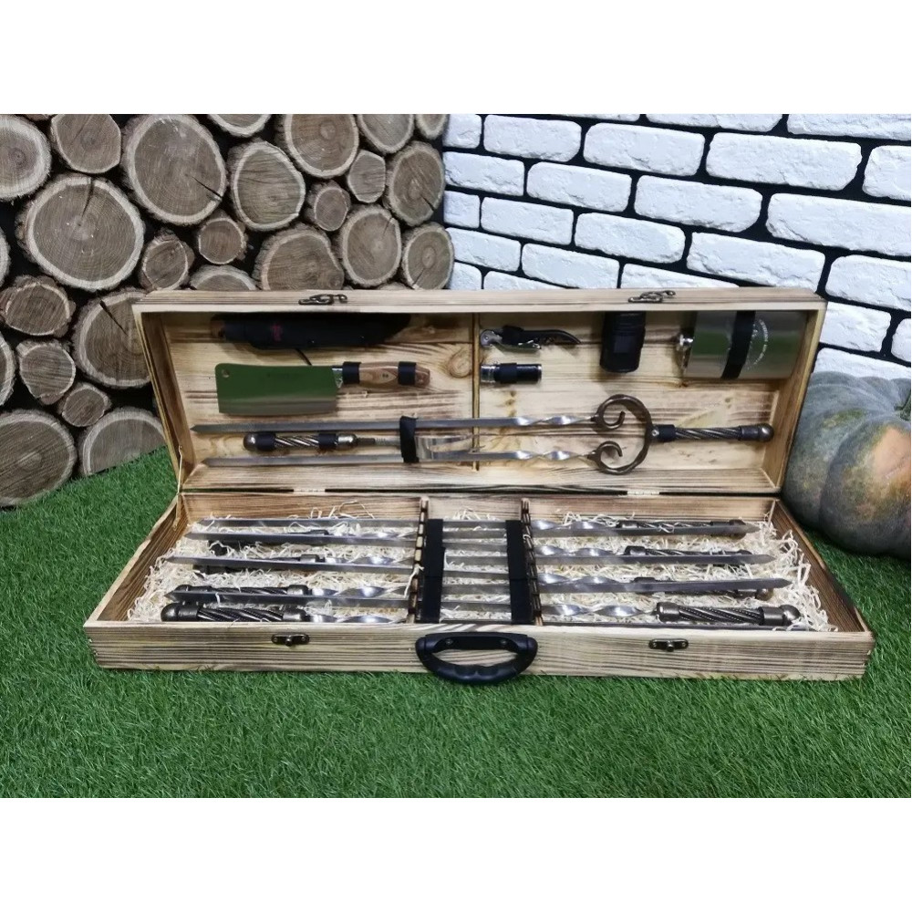 Пропонуємо вашій увазі шикарний і преміальним набір шампурів в оригінальному чорному кейсі.
