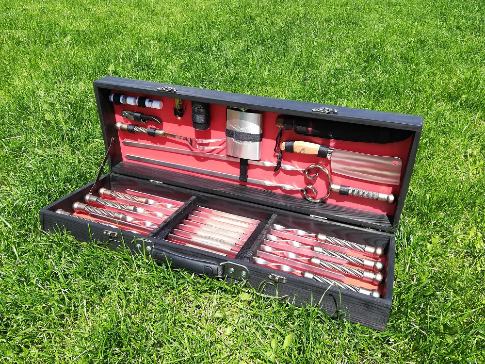 Крім неповторного зовнішнього вигляду набір також має високий рівень функціональності та корисності. У кейсі зібрано все найнеобхідніше для приготування різноманітних страв на мангалі: шашлик, люля-кебаб, реберця, овочі, гриби, курка, крильця і багато іншого.