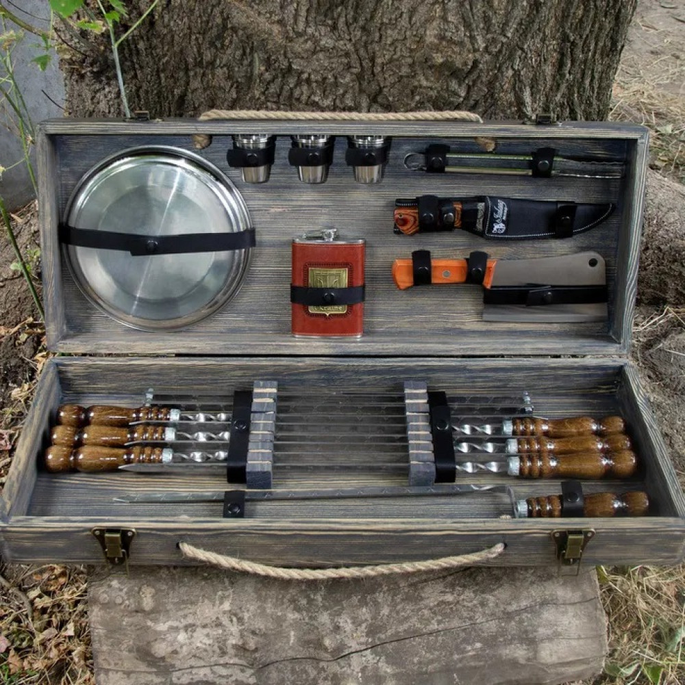 Набір шампурів в дерев'яний кейс ручної роботи.