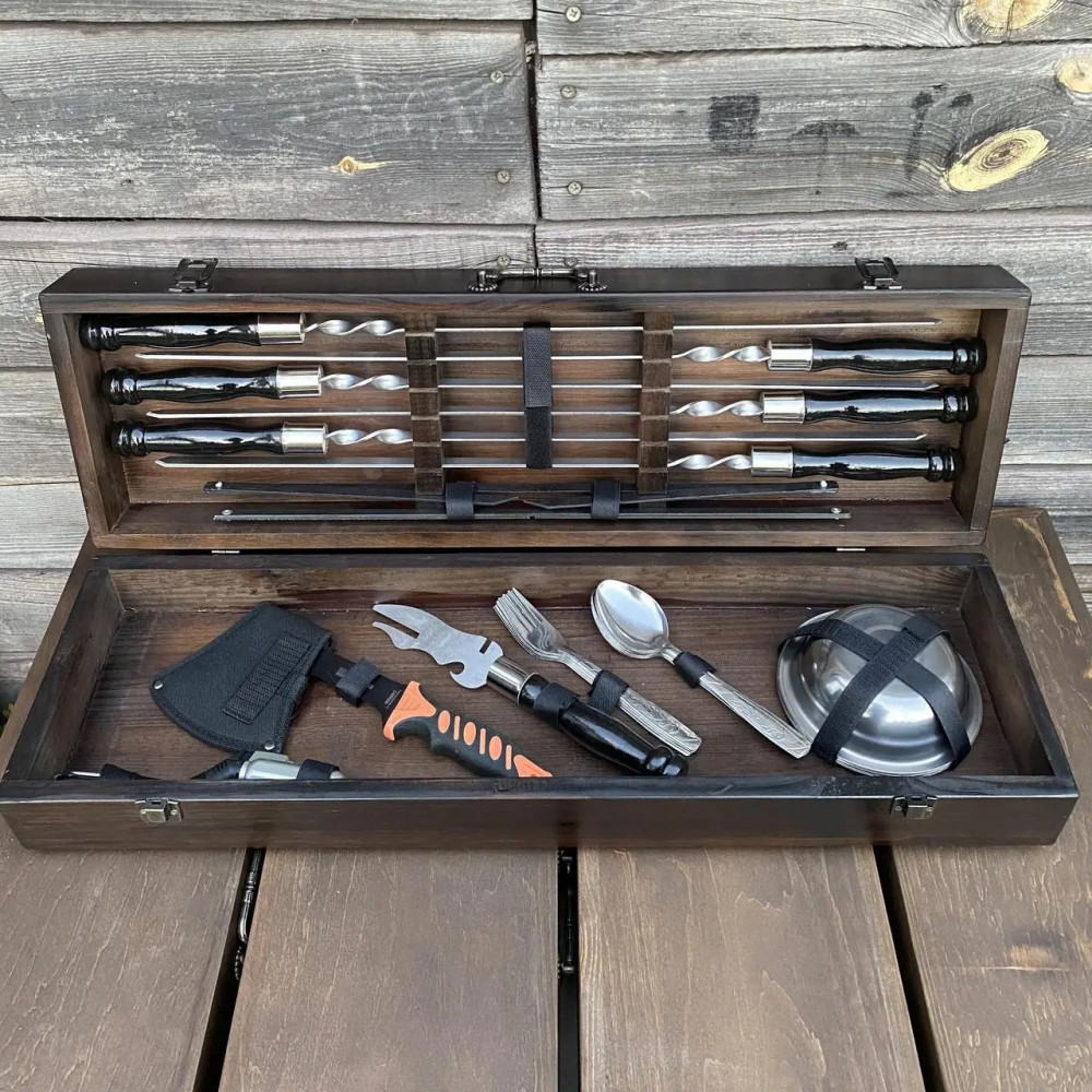 Подарунковий набір шампурів - символ гостинності та радості приготування їжі на відкритому повітрі. Будьте впевнені, що ваш подарунок буде затребуваний та оцінений на будь-якому заході.