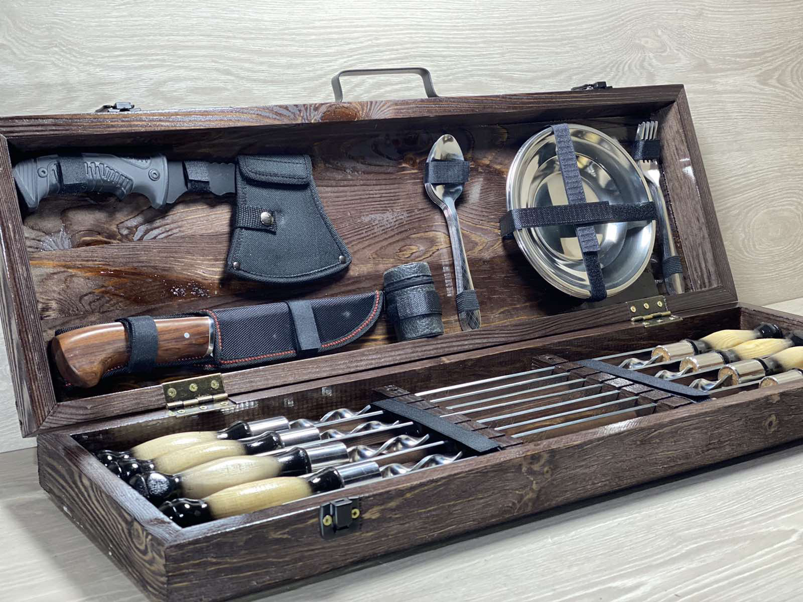 Такий набір шампурів створить WOW-ефект ще до його відкриття. Тільки побачивши дерев'яний кейс, майбутній володар набору отримає безмежний вибух захоплення і незабутніх емоцій.
