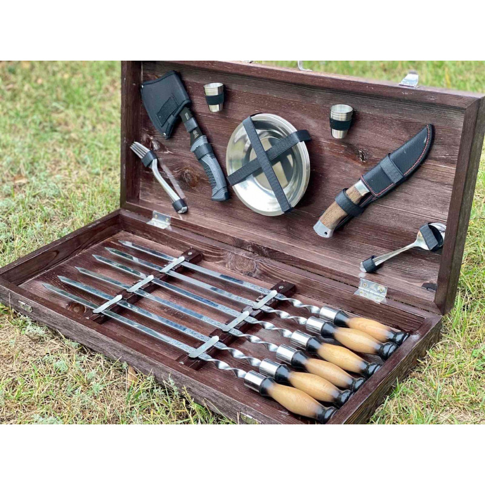 Такий набір шампурів створить WOW-ефект ще до його відкриття. Тільки побачивши дерев'яний кейс, майбутній володар набору отримає безмежний вибух захоплення і незабутніх емоцій.