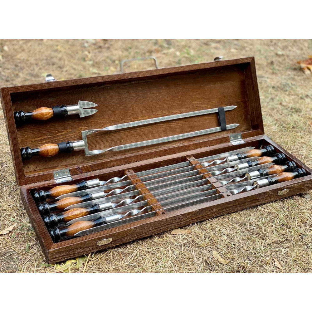 Такий подарунковий набір шампурів створить WOW-ефект ще до його відкриття. Тільки побачивши дерев'яний кейс, майбутній володар набору отримає безмежний вибух захоплення і незабутніх емоцій.