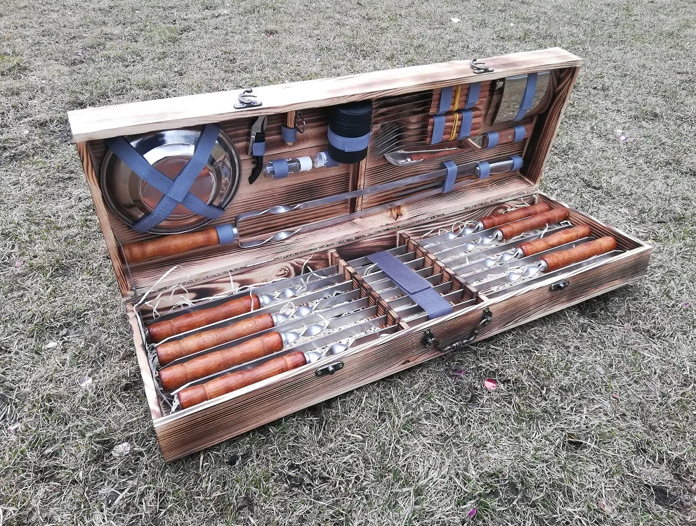 ✅ Подарунковий набір шампурів заповнений під зав'язку всім необхідним для приготування будь-якої страви на мангалі або грилі.