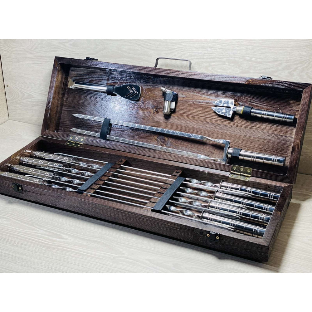 Такий подарунковий набір шампурів створить WOW-ефект ще до його відкриття. Тільки побачивши дерев'яний кейс, майбутній володар набору отримає безмежний вибух захоплення і незабутніх емоцій.