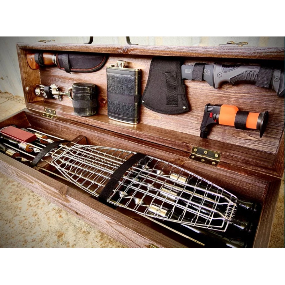 Набір шампурів упакований в презентабельний дерев'яний кейс, що надає такому подарунку ще більше преміальності.