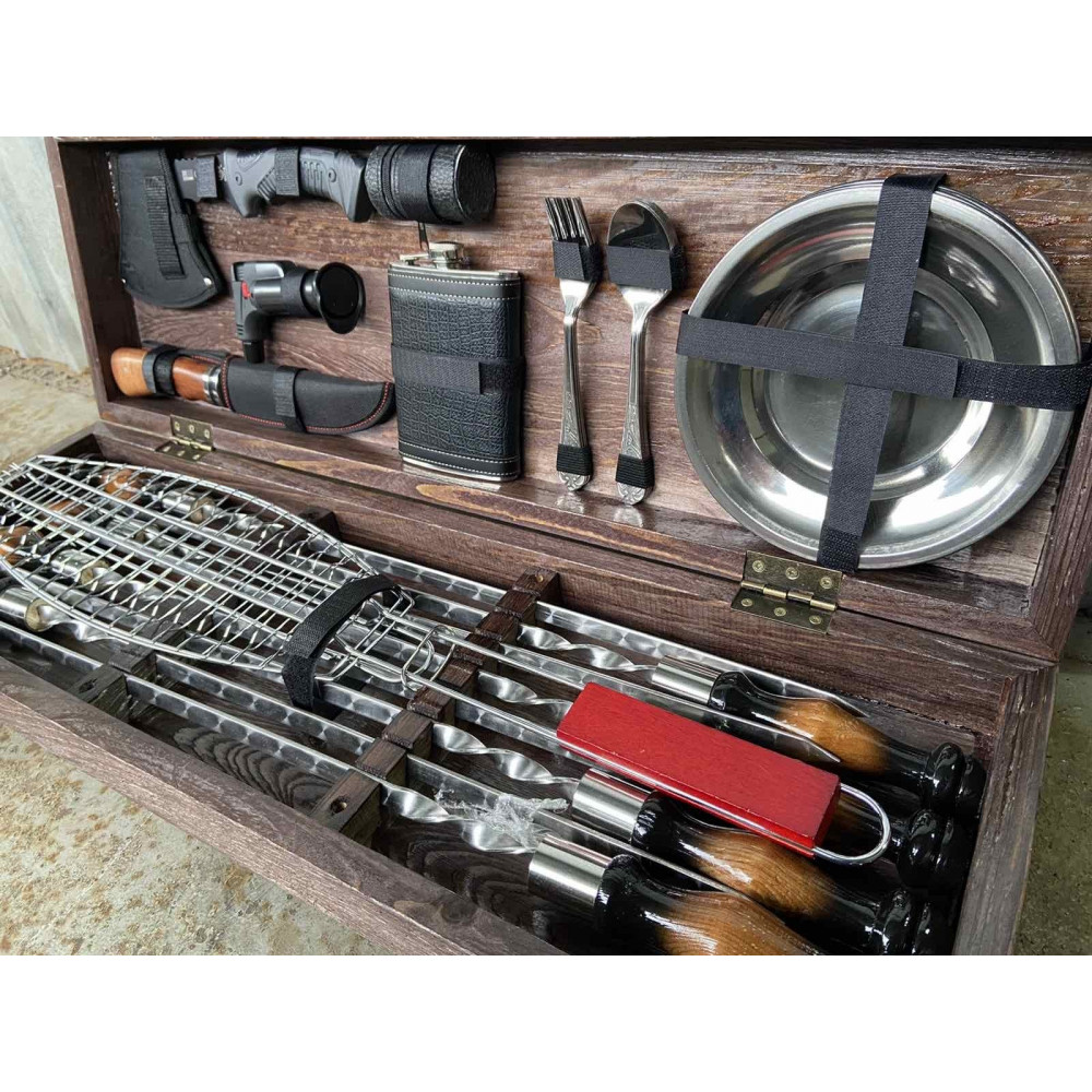 Набір шампурів упакований в презентабельний дерев'яний кейс, що надає такому подарунку ще більше преміальності.