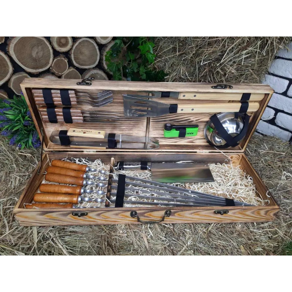 Подарунковий набір шампурів у дерев'яному кейсі - чудовий подарунок для любителя готувати на мангалі.