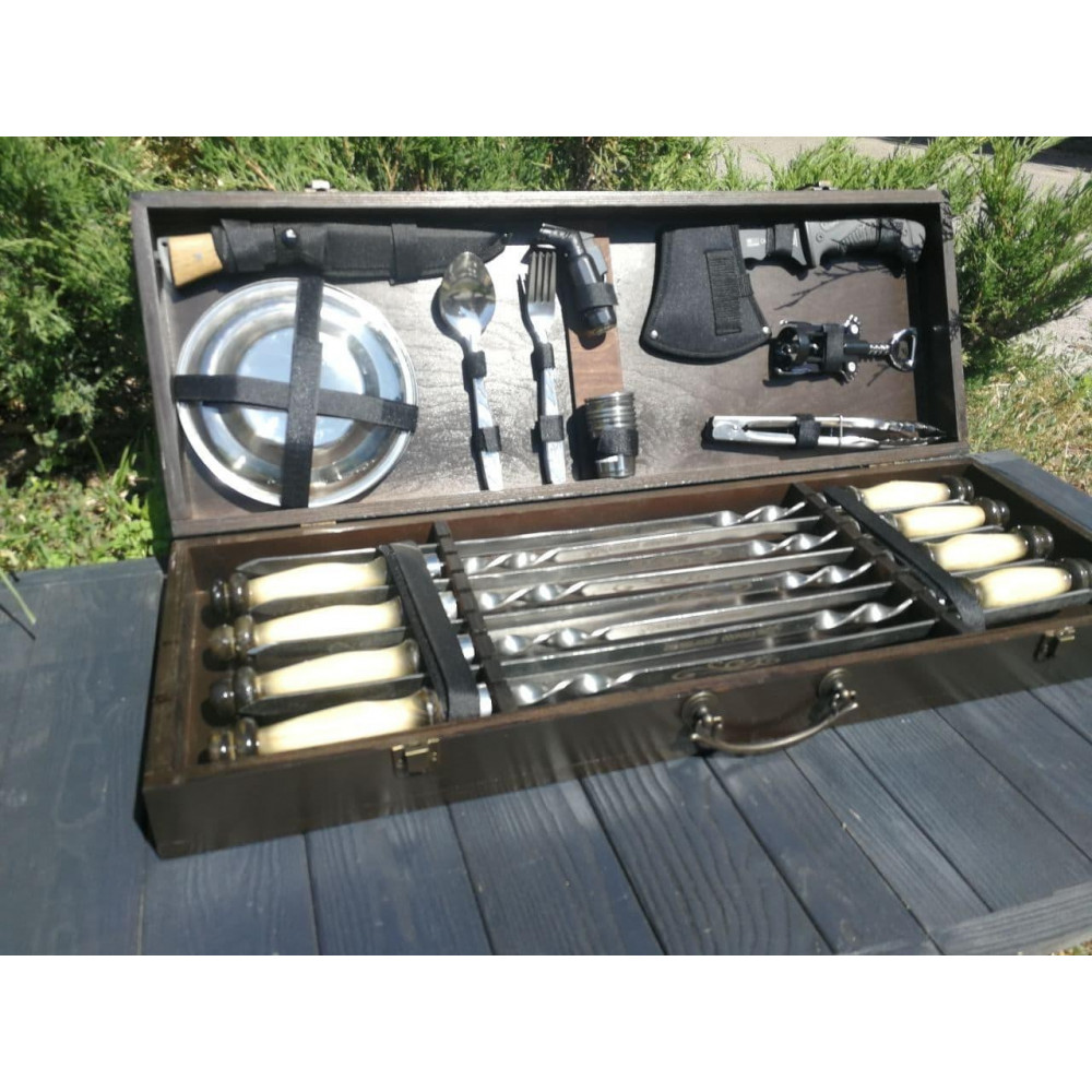 Презентабельний, тому що упакований в красивий дерев'яний кейс. Корисний, тому що максимально спростить приготування страв. Функціональний, тому що в кейсі є все необхідне для приготування різноманітних страв на мангалі або грилі.