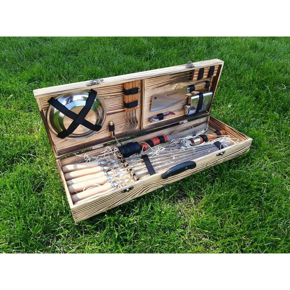 У наборі зібрано все необхідне для приготування різноманітних страв на мангалі або грилі.
