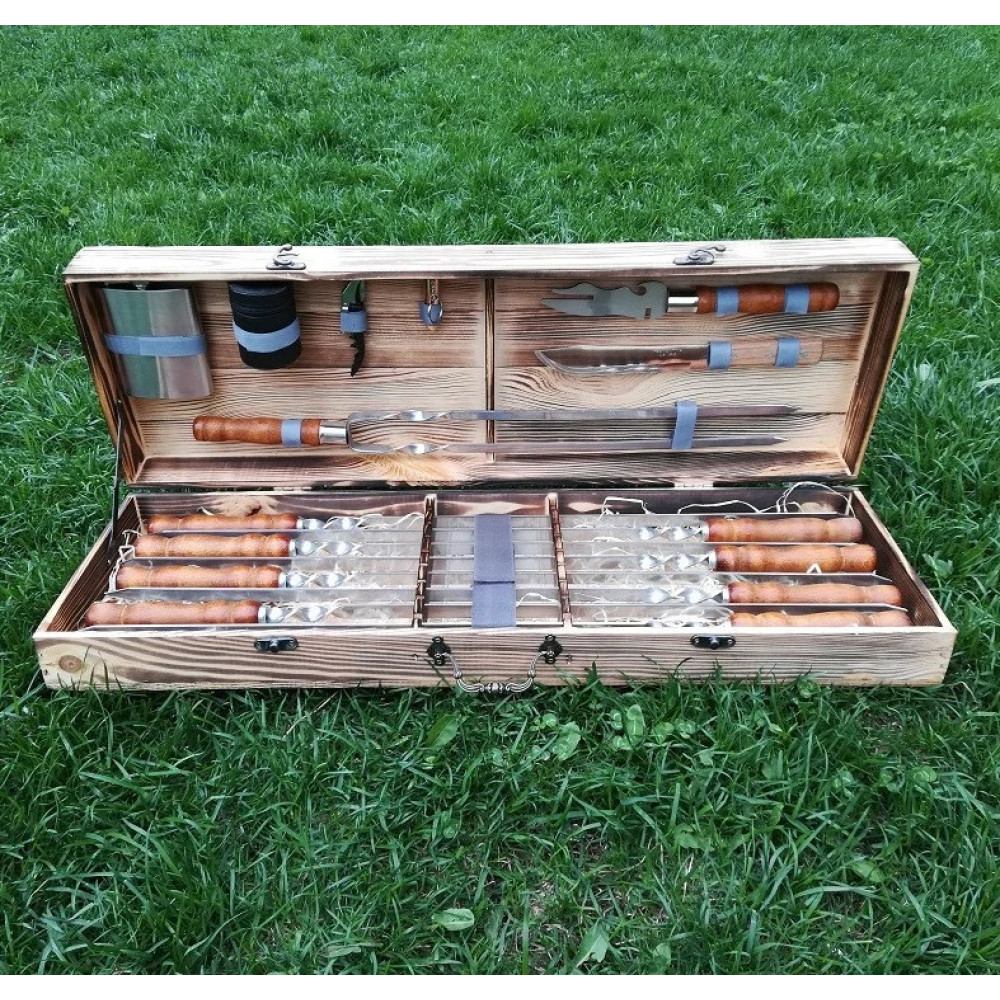 У наборі зібрано все необхідне для приготування різноманітних страв на мангалі або грилі.