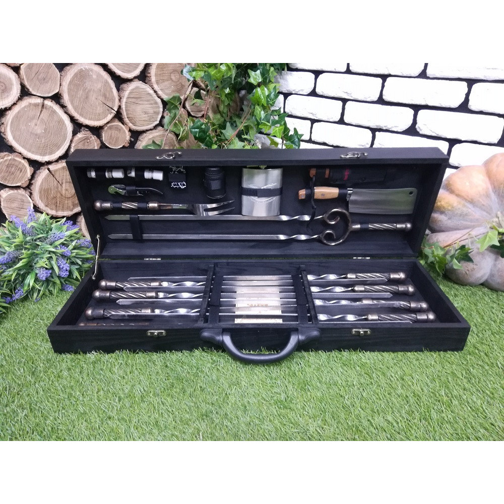 Пропонуємо вашій увазі шикарний і преміальним набір шампурів в оригінальному чорному кейсі.