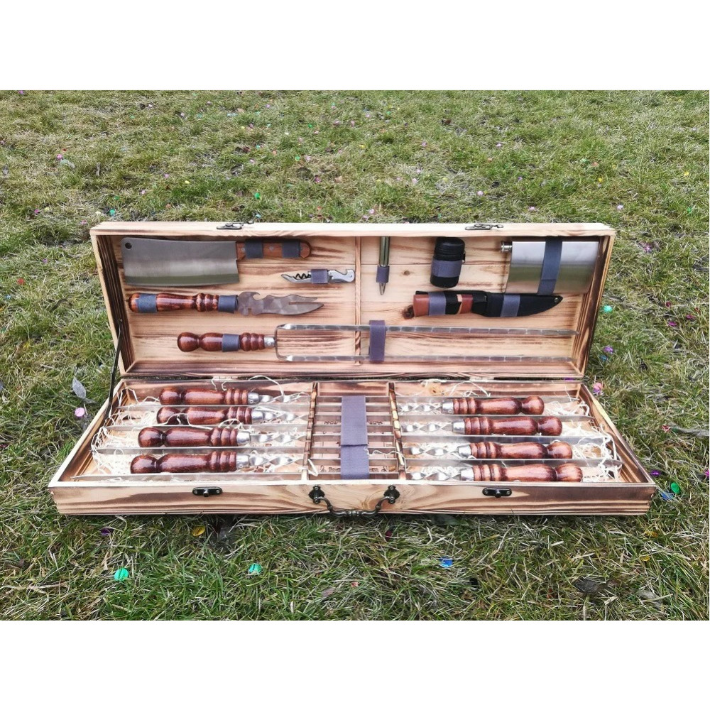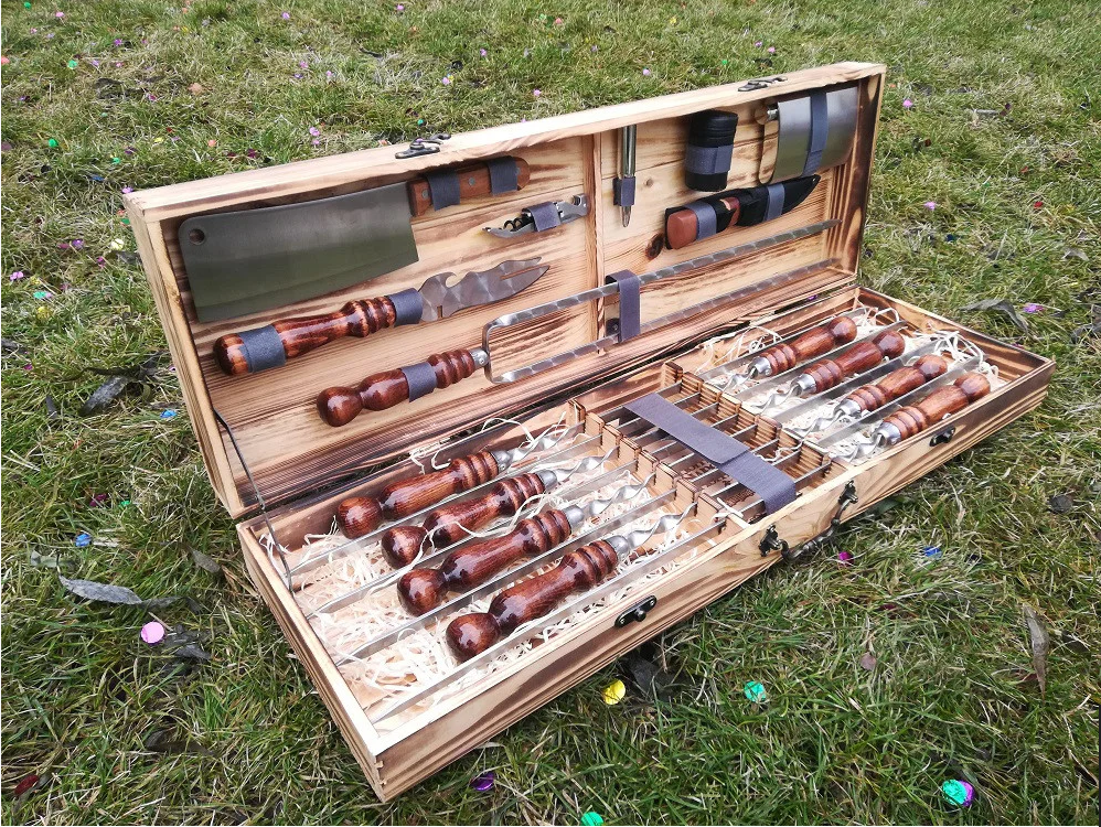 У наборі зібрано все необхідне для приготування різноманітних страв на мангалі або грилі.