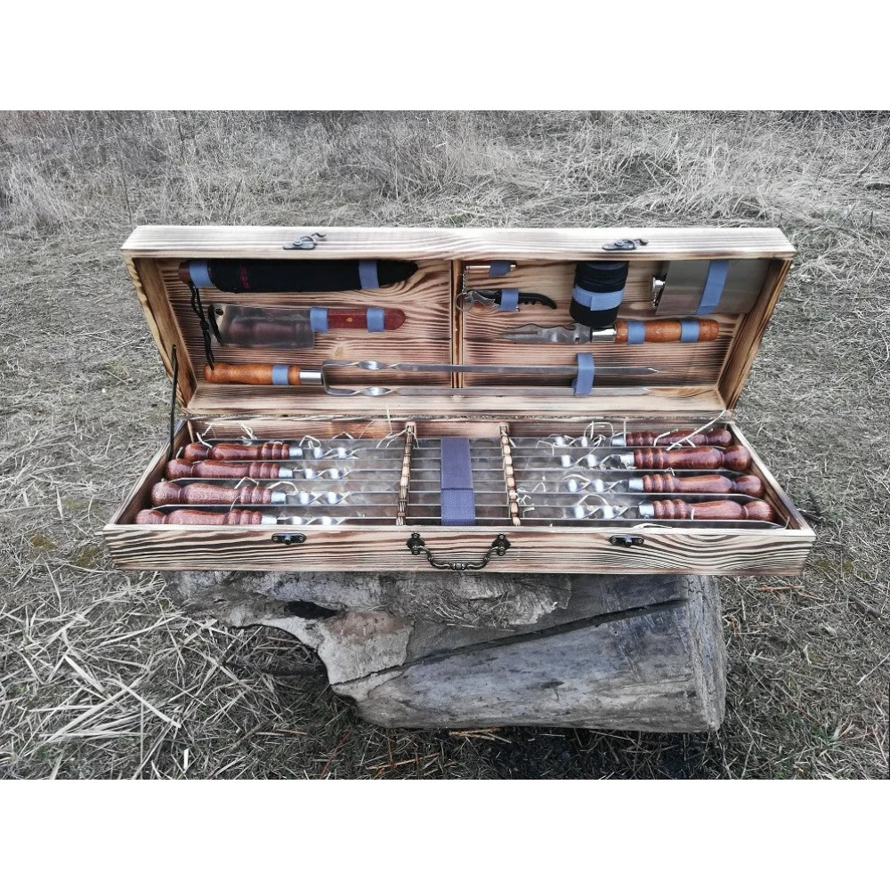 У наборі зібрано все необхідне для приготування різноманітних страв на мангалі або грилі.