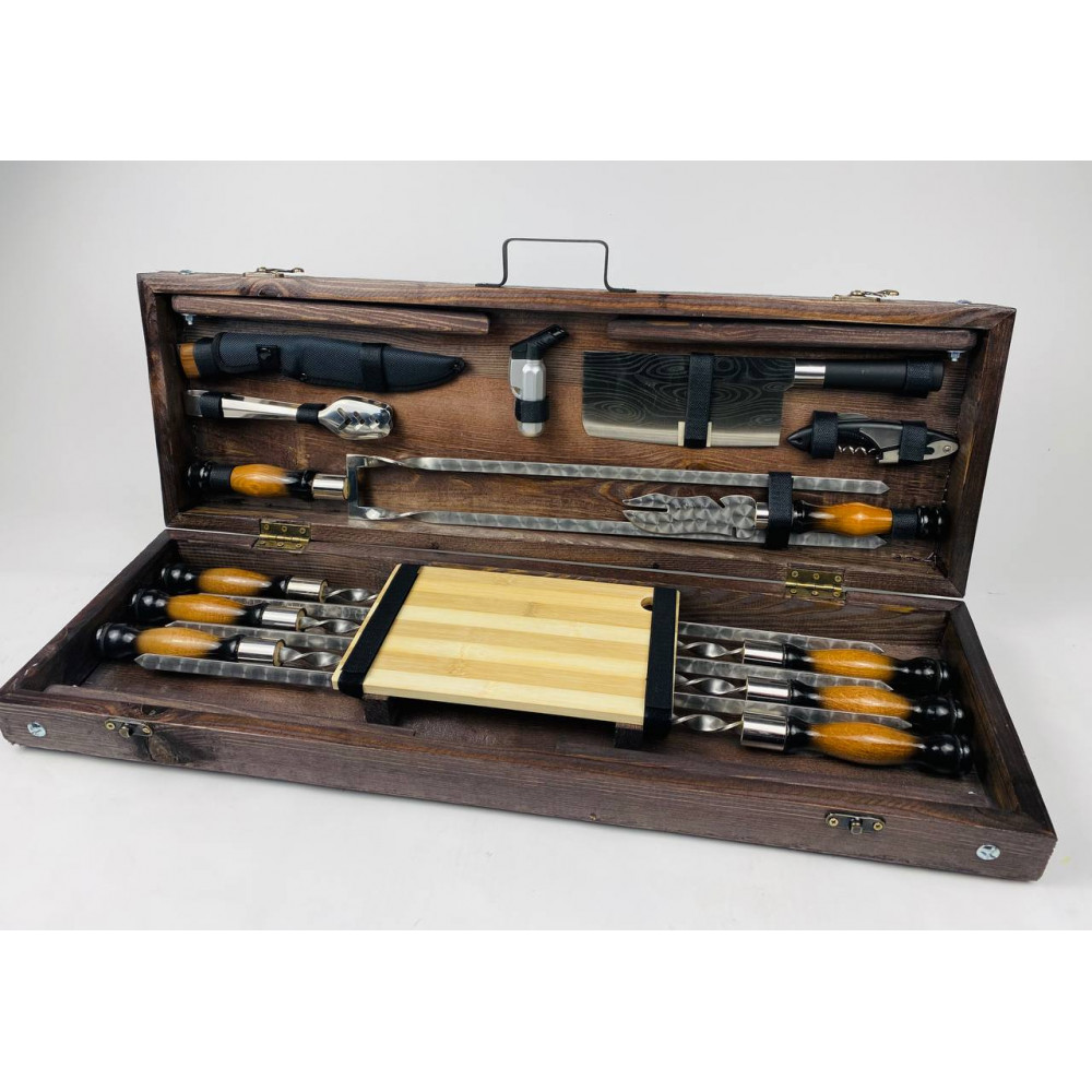 Подарунковий набір шампурів у незвичайному кейсі, що трансформується у повноцінний столик
