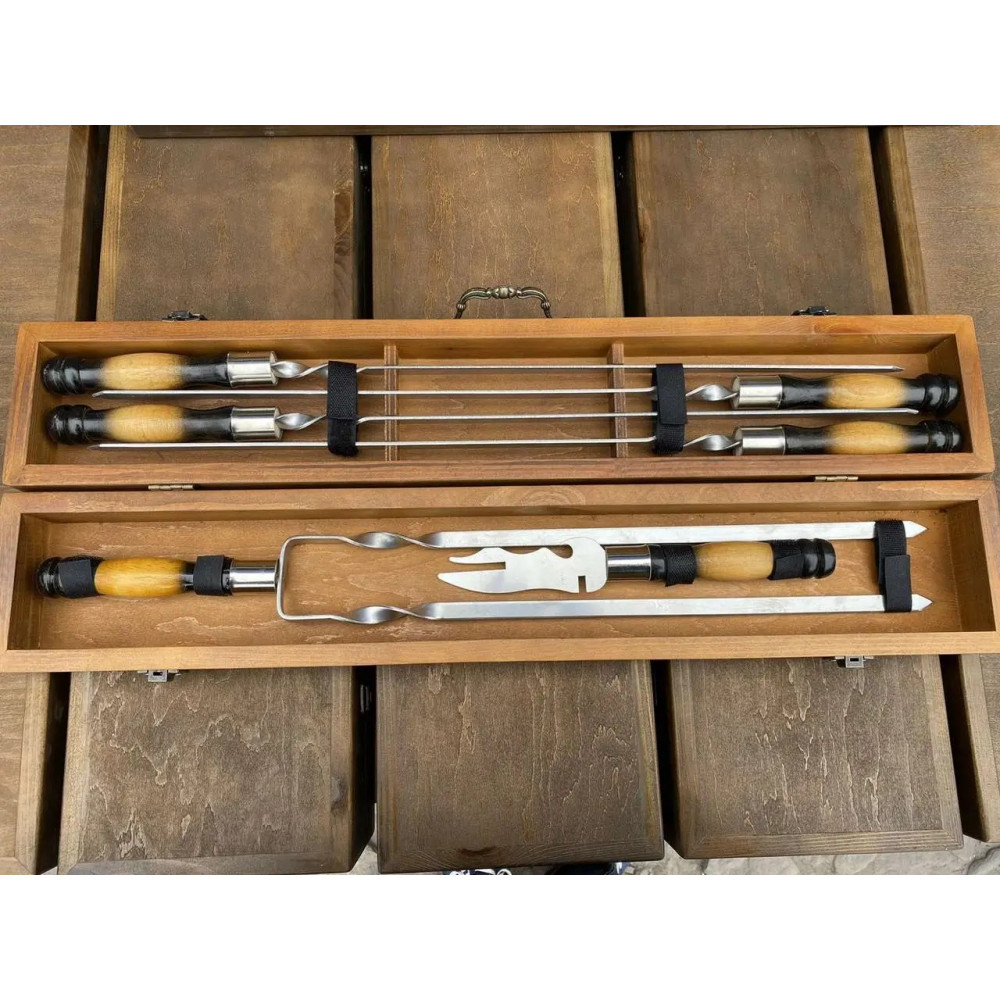 Подарунковий набір шампурів - символ гостинності та радості приготування їжі на відкритому повітрі. Будьте впевнені, що ваш подарунок буде затребуваний та оцінений на будь-якому заході.