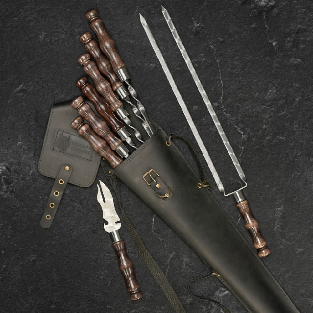 Набір шампурів "Асгард" у шкіряному кейсі — це ідеальне рішення для всіх шанувальників смачних страв, приготованих на вогні.