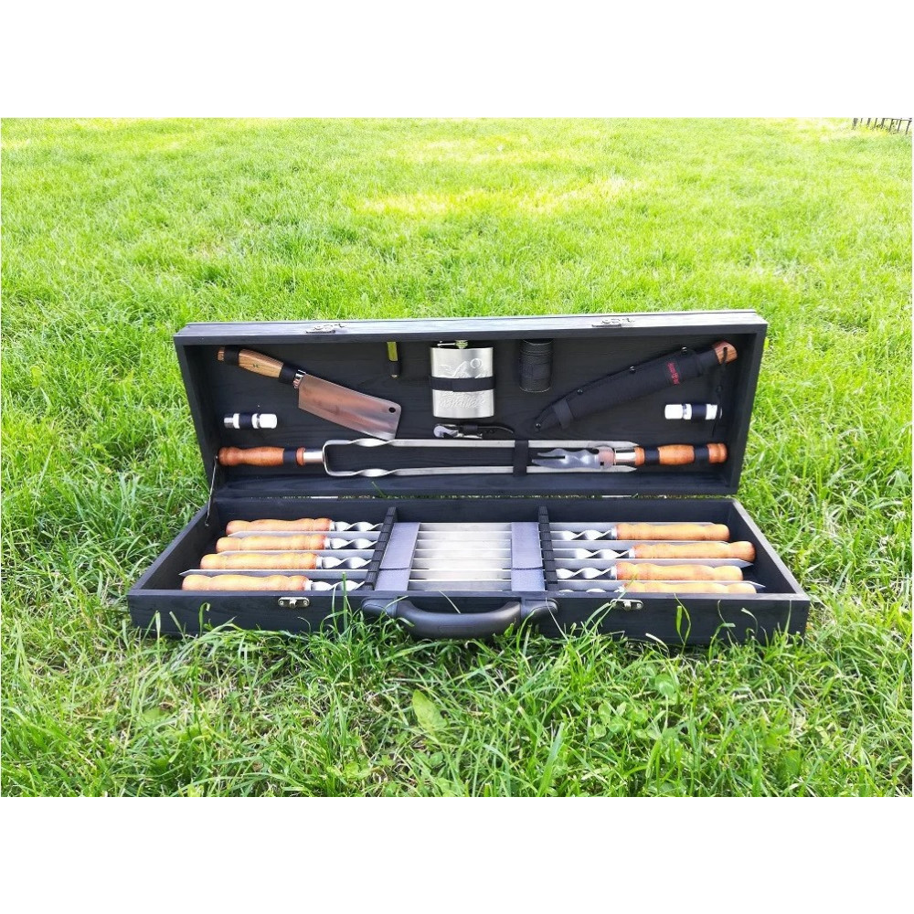 Крім неповторного зовнішнього вигляду набір також має високий рівень функціональності та корисності. У кейсі зібрано все найнеобхідніше для приготування різноманітних страв на мангалі: шашлик, люля-кебаб, реберця, овочі, гриби, курка, крильця і багато іншого.