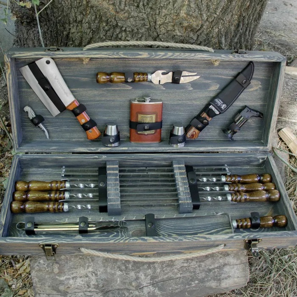 Набір подарункові шампури в дерев'яний кейс ручної роботи.