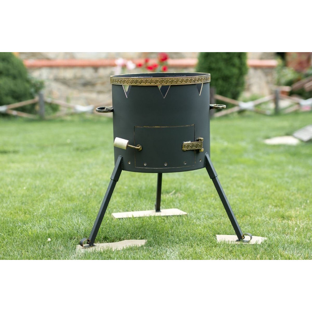 У нижній частині жаровні передбачені отвори для рівномірного надходження повітря. Дверцята з дерев'яною ручкою (не нагрівається).