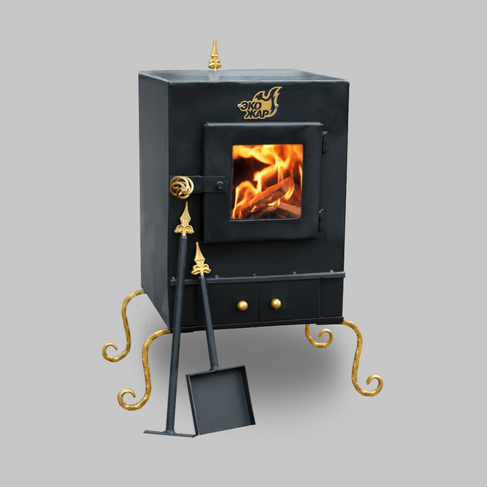Завдяки жаростійкому склу та кованим елементам піч-буржуйка Екожар Комфорт Плюс крім обігріву виконує естетичну функцію. Скло перетворює її на піч-камін і дозволяє милуватися потріскуванням вогню в холодну, зимову пору.