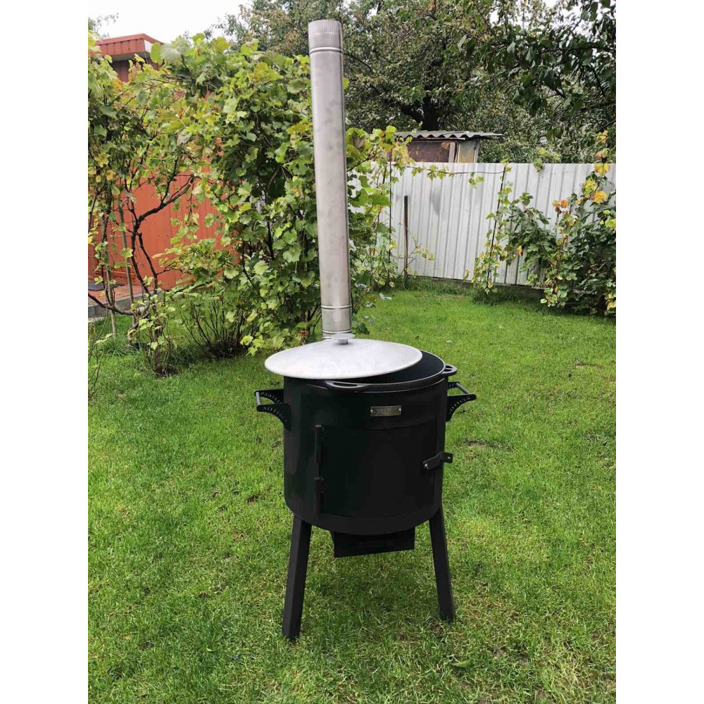 Діаметр жаровні даної моделі 48 см, що дозволяє використовувати казан на 18-22 літри. У комплектації також передбачені кільця меншого діаметра, що дозволяє використовувати казани від 6 до 12 літрів. З такою пічкою для казана ви зможете приготувати страву на велику компанію або для сім'ї.
